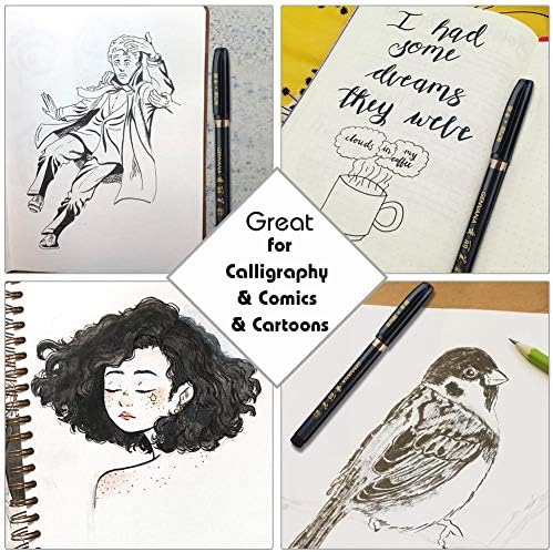 【Great for Calligraphy & Comics & Cartoons】Be applicable for regular script, signature, invitations, sign, detailing, greeting cards, comics and cartoons. Also ideal for stylised design, oriental artwork.(Tip:They actually look very pretty when faded out with a water brush, so that might make for some cool effects)