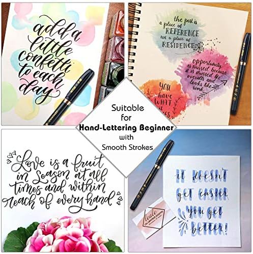 【Varirty of Tip Sizes & Cost-effective, No Better Choice to Brush Lettering Ever】Affordable enough for everyone to practice, especially for hand-lettering beginner, you get smooth strokes and a good variety of line weights thanks to 3 different tip sizes. Compared with common markers with fatter base and a small pointed tip, our brush lettering pen has a tiny bit more flexibility, great for illustration or lettering/modern calligraphy.The harder you press, the thicker the line!