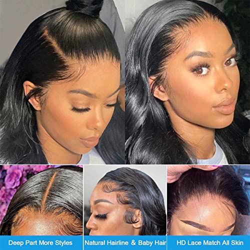 13×4 Lace Front Wigs Body Wave Human Hair Wigs for Black Women 18 Inch Glueless Frontal Wigs Human Hair 150% Density HD Lace Front Wigs Human Hair Pre Plucked Natural Color(Body Wave Wig, 18 Inch)