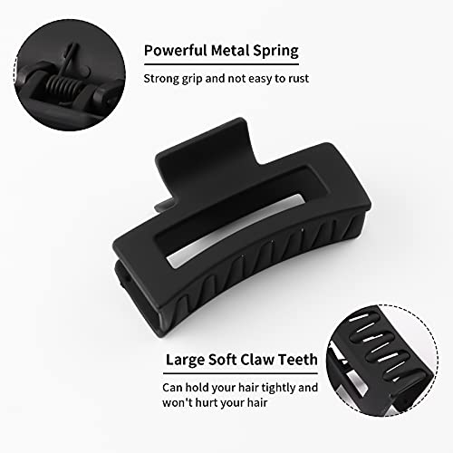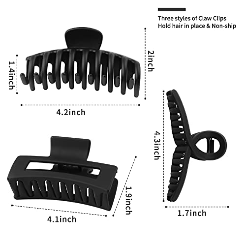3 Pack Black Hair Claw Clips, 4.3 inch Matte Hair Claw Clips For Women and Girls, Black Large Jaw Hair Clips Strong Hold for Thick Hair
