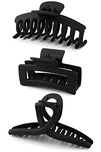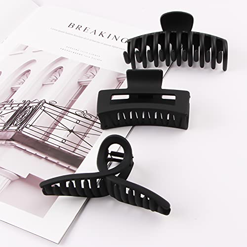 3PCS Black Hair Claw Clips, Large Matte Black Hair Claws,Fashion Hair Barrettes for Women, Strong Hold Hair Accessories for Girls Thick Long Heavy Hair