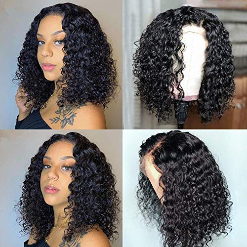 4×4 Lace Closure Wigs Curly Short Bob Wigs Human Hair 9A Pre Plucked Hairline with Baby Hair Brazilian Remy Wigs for Black Women 150% Density (8 inch)