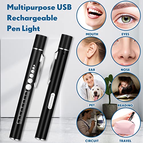 5 Pcs Pen Lights for Nurses LED Medical Penlights with Pupil Gauge and Ruler, USB Rechargeable Pen Light 2 Modes Warm White Light Nursing Student, Doctor Nurse Accessories for Work, Black