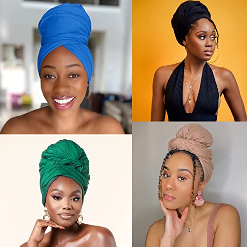 Head wraps size:L*W: 180cm/71″ * 80cm/32″ ,The stretchy headwrap can easily wrap hair of different lengths,long and wide enough to meet various wearing styles,allows you to forge grace and charming look