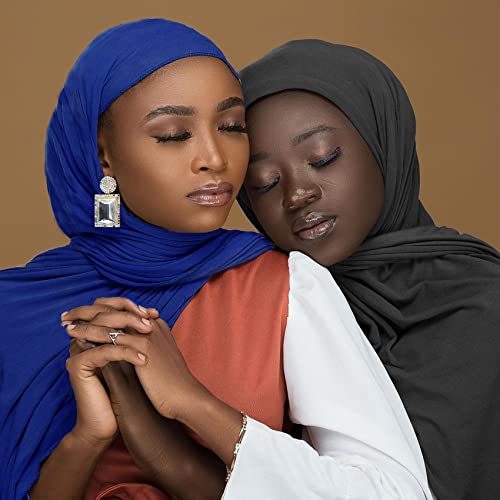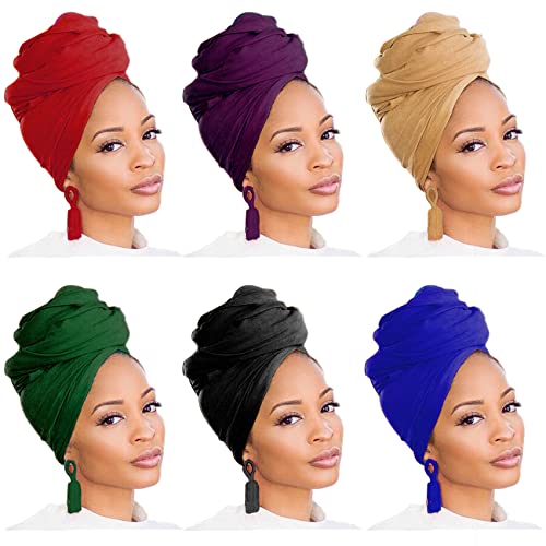 6 Packs Long Stretch Jersey Hair Wrap for Black Women Head Turban Hair Scarf Solid Color Breathable Lightweight African Fashion Headwrap
