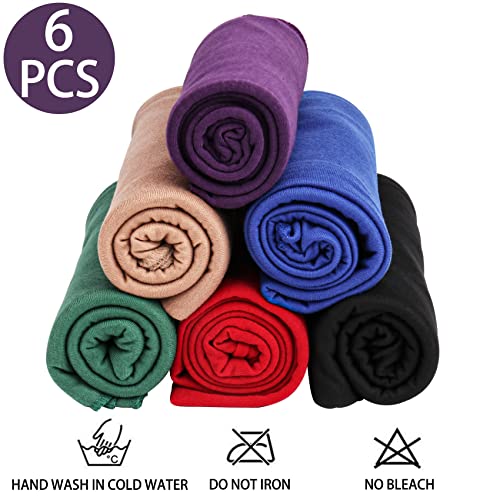 6 Pieces Stretch Jersey Headwraps Urban Hair Scarf Ultra Soft Extra Long Breathable Solid Color Turban for Women