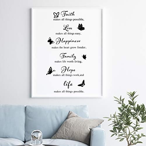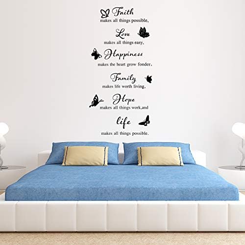 6 Pieces Vinyl Wall Decals, Faith Makes All Things Possible, Family Wall Decals Wall Stickers Quotes Inspirational Decals, Motivational Wall Quote Sayings Stickers Butterfly Wall Stickers Home Decors