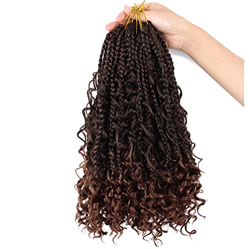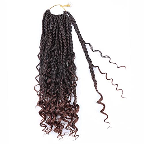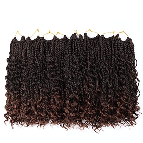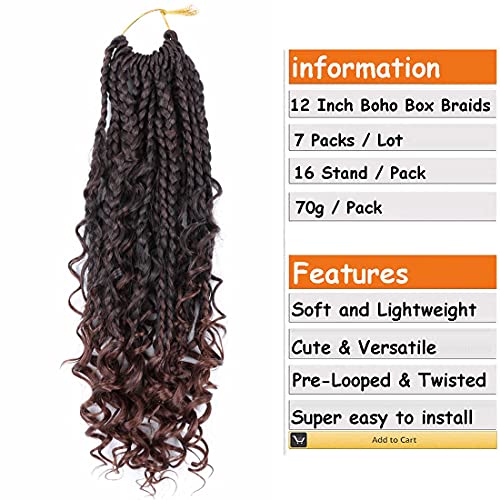 7 Packs Boho Box Braids Crochet Hair 12 Inch Bohemian Crochet Box Braids Curly Ends Bob Box Braid Hair for Black Women (T1B/30#, 12 Inch)
