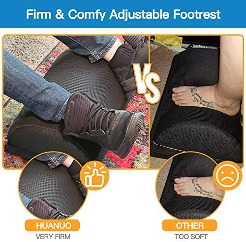 Adjustable Foot Rest – Under Desk Footrest with 2 Optional Covers for Desk, Airplane, Travel, Ergonomic Foot Rest Cushion with Magic Tape and Massaging Micro Beads for Office, Home, Plane by HUANUO