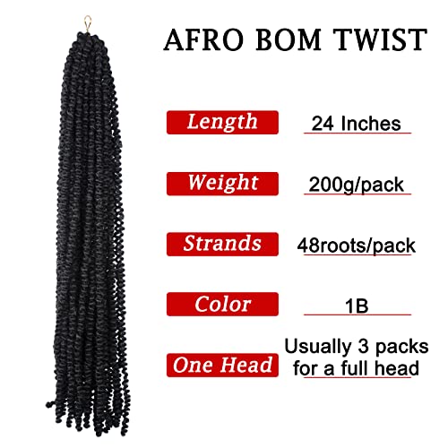 🔸Size & Color – (3 Packs, Passion Twist Hair 24 Inch, 1B). Afro bom twist hair options: 1 size (24inch), 1 colors available (1B). Weight: 200g/pack, 48 strands per pack. Usually 3 pack is enough for a head.