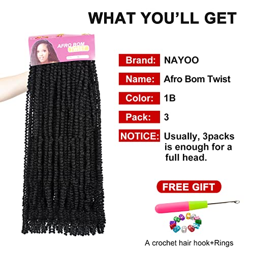 Crochet Hair Material — NAYOO Afro Bom Twist Hair is made from 100% high quality, low temperature, hot water setting, Kanekalon synthetic fiber. That is the best synthetic fiber, which can give your hairstyle a natural looking.