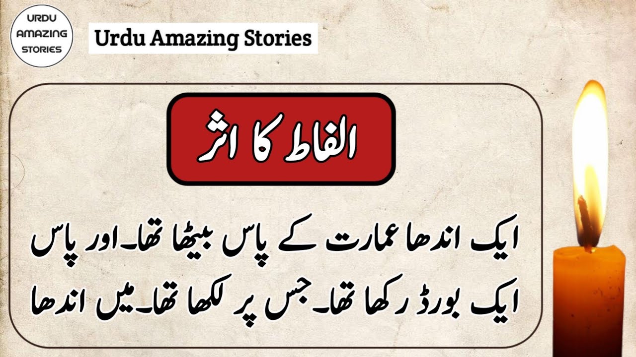 Moral Story of ablind man and a man who the blind man wer baging on the road and a boy come and saw the blind man and he give the som money in the cape of bl8nd man suddenly he saw near the man aposter and read then he write another words on poster and went the blind man saw that cap was full of mony in short time at the end the result is that alfaz have a asar you can sy the power of wordsThis is amazing sabaq amoz interesting urdu story