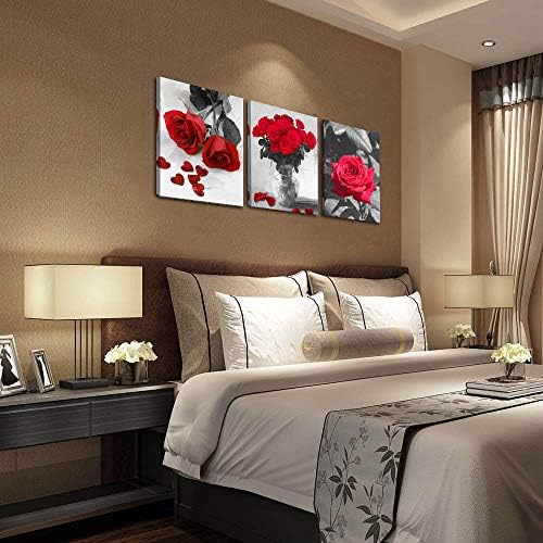 💕Red Rose Wall Art Size: 12inx16inx3pcs(30cmx40cmx3pcs), rose wall art overall size 36″length x 16″width x1″ deep stretched bar.