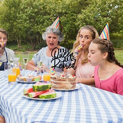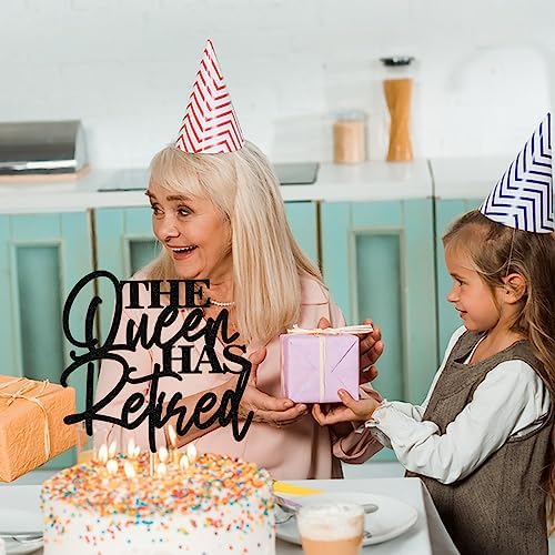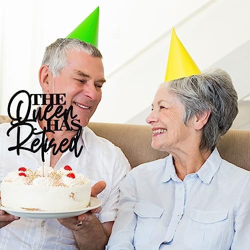 The Queen Has Retired Cake Topper, Happy Retirement Party Cake Decor,Retired Cake Decorations for Women, Theme Party Decoration Supplies black Glitter