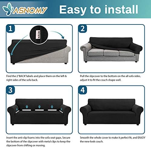 Asnomy Sofa Covers for 2 Cushion Couch Stretch loveseat Cover Slipcovers, Pet Protector Furniture Covers for Dogs Cats Spandex Jacquard Fabric Small Checks(Medium, Black)