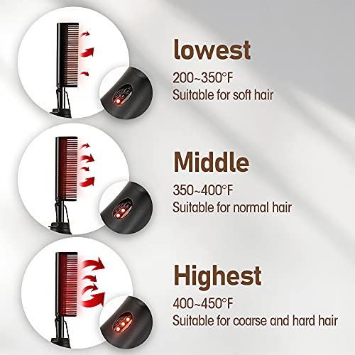 【Heating Fast】The heat press comb heats evenly in 20-30 seconds. It can quickly and safely straighten the rough and curly hair, to make it silky and straight.It’s a quick way to tidy up your look on a busy morning.