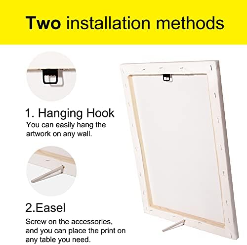 Two Installation Methods: Ready to hang. Each canvas art painting is installed with a metal hook, which can be easily hung on the wall. In addition, it is also equipped with an easel for easy and quick installation.