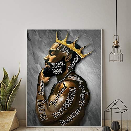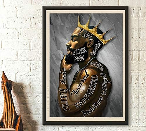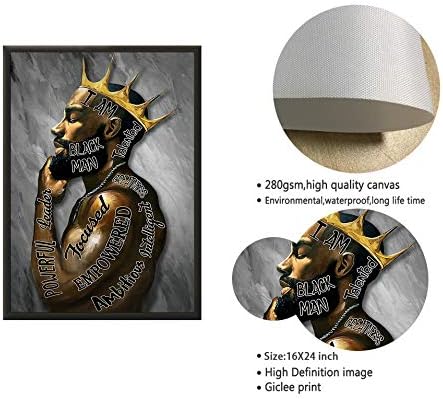 Black Men Wall Art African American Men Portrait Wall Art Black Men I Am Enough Art Afro King Poster Abstract Contemporary Canvas Prints Painting Home Decor For Bedroom Living Room 16X24 inch