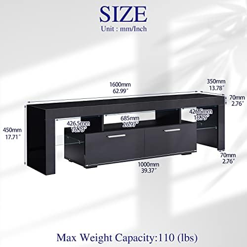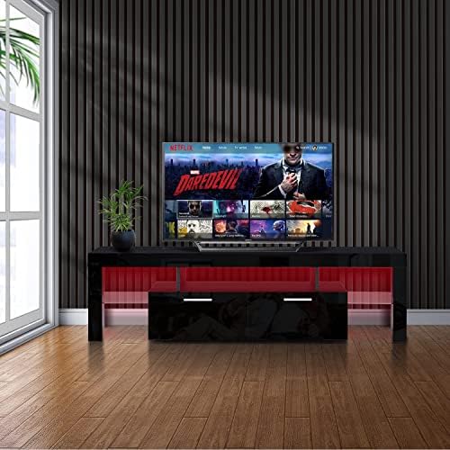 🌈【Adjustable Colorful LED System】This TV stand with LED comes with 16 RGB LED BACKLIGHT, 4 LIGHT MODE & BRIGHTNESS, ideal for home lovers, which can add artistic furniture to your living room and bedroom.