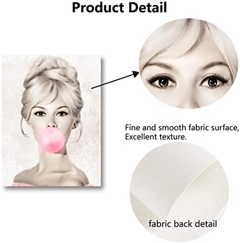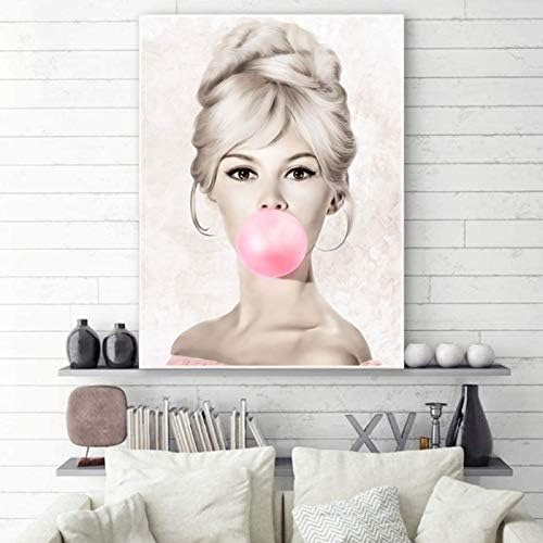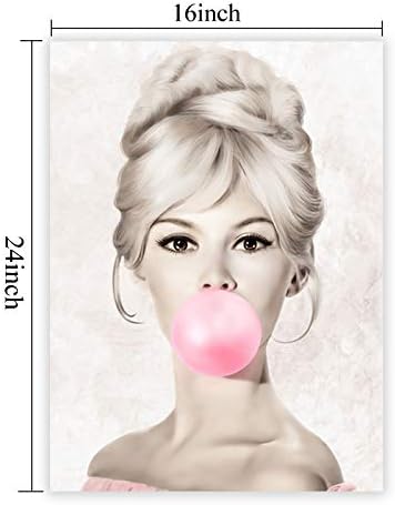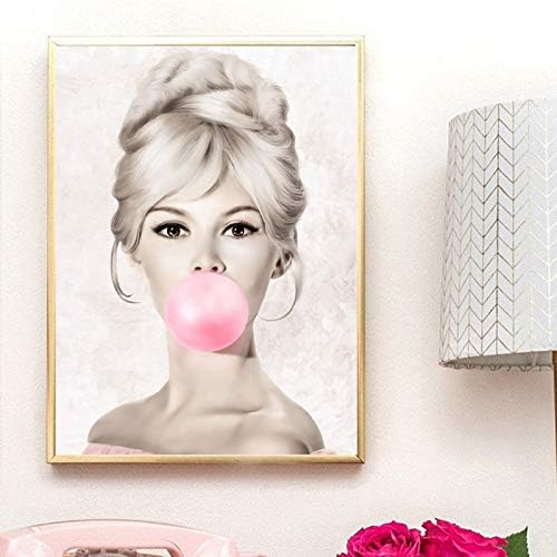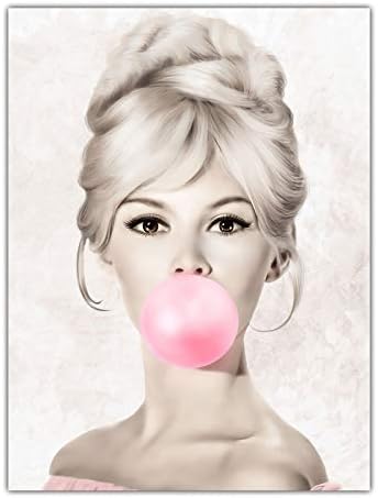 Brigitte Bardot Wall Art Famous Actress Brigitte Bardot Portrait Picture Print on Canvas Bedroom Decor Brigitte Bardot Pink Bubble Gum Canvas Wall Art Vintage Movie Star Poster Print Decor Frameless