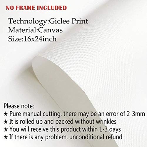 1.Color And Size: The print size is 16×24 inch, HD printing on good quality canvas, keeping the image clear, waterproof, and non-fading. The workmanship is fine and the viewing effect is very good. Professional technology to ensure product quality is the purpose of our service.