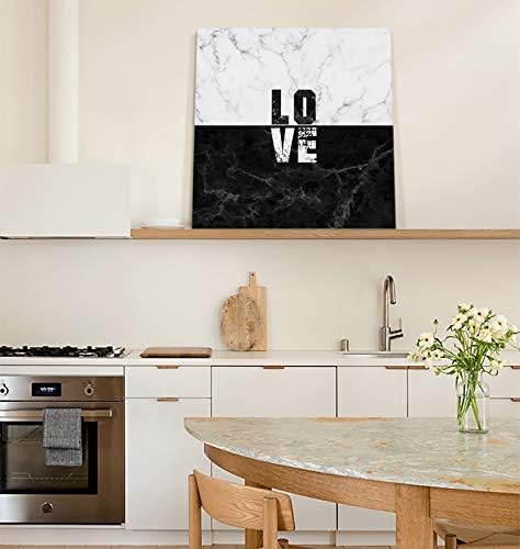 Canvas Print Wall Art Painting Decor, Black and White Marble Texture Modern Home Decorations Giclee Artwork Picture Strenched and Framed, Love 20 x 20 inch