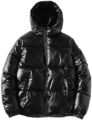 chouyatou Men’s Casual Hooded Full Zip Metallic Shiny Short Bomber Alternative Down Coat