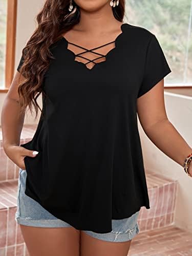 Cozyease Women’s Plus Size Criss Cross Short Sleeve Summer T Shirt Scallop Trim Casual Comfy Blouse Top