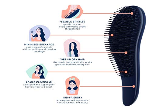 Works on Various Hair Types – Designed to be used on wet or dry hair, this brush easily removes every knot and tangle. Can be used on straight, curly, natural, thin, thick, kinky, coily, frizzy, extensions and even wigs.