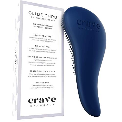 Crave Naturals Glide Thru Detangling Brush for Adults & Kids Hair – Detangler Hairbrush for Natural, Curly, Straight, Wet or Dry Hair (BLUE)