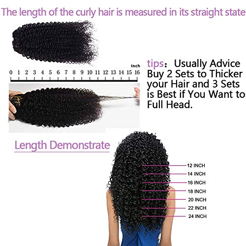 Curly Clip In Extension Human Hair 3C 4A Kinky Curly Clip Ins Full Head for Black Women Brazilian Remy Human Hair Natural Color 8Pcs with18clips 120g/Set (14 inch, curly wave)
