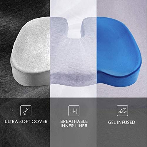 CYLEN Home Office Seat Cushion – Comfort Memory Foam Chair Cushion with Cooling Gel Infused for Tailbone, Coccyx, Back & Sciatica Pain Relief