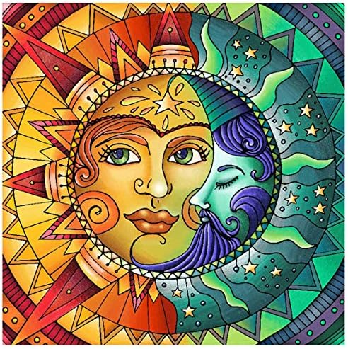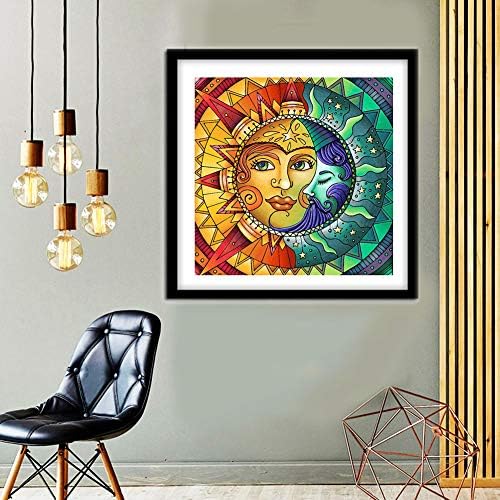 Diamond Painting Kits for Adults,Sun and Moon Face Full Drill Crystal Rhinestone Embroidery Cross Stitch,DIY 5D Paint by Numbers for Adults Beginner,Home Wall Decor 13.8″×13.8″