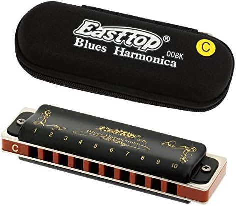 East top Diatonic Harmonica Key of C 10 Holes 20 Tones 008K Blues Harp Mouth Organ Harmonica with Black Cover, Top Grade Harmonica for Adults, Professionals and Students