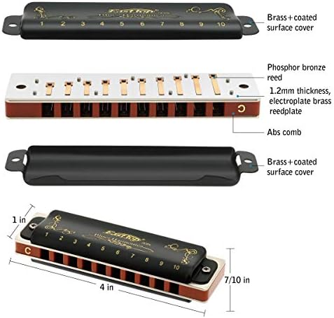 Rich sound, responsive, airtightness – Precision-made plastic comb with phosphor bronze reeds; 1.2mm thickness reed plate is easier to get the higher pitch, rich sound and timbre. The reed plate with electroplating antirust, the hole, reed gap is better after electroplating. At the same time, you will feel comfortable when playing, easy to use the skill, such as over-blowing and bending, giving the performer a new experience.