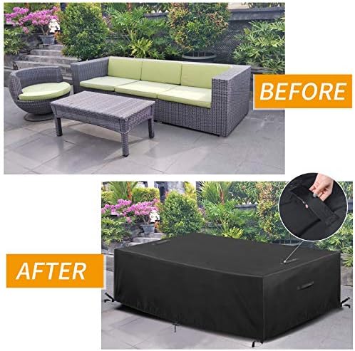 【Easy to Move】With 4 reinforced handles, which are respectively installed on the top and side of the cover for easy installation and removal. Equipped with 4 windproof buckles and 2 adjustable drawstrings to securely tie up the furniture, and prevent it from being blown up by the wind. Lined with sewing waterproof strip, double waterproof, prevent water from penetrating from the seam. 1 storage bag for easy storage. It will always protect your furniture, safe, dry and tidy.