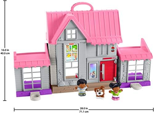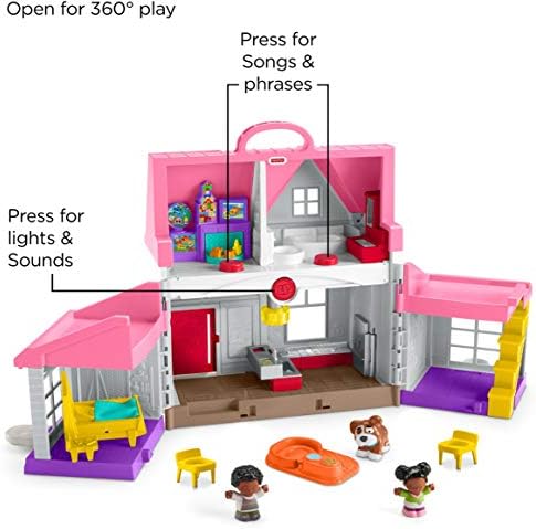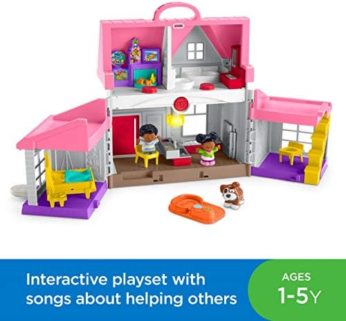 Welcome home, kiddo! When toddlers open the Little People Big Helpers Home, they’ll discover multiple rooms filled with realistic features and lots of hands-on play. As little ones explore the pink house, playful songs, sounds and phrases encourage them to help around the house, care for their animal friends, and even introduce healthy habits! Little things that make a big difference Helping Others: Sung songs and fun phrases teach kids about teamwork, playing together, helping others, manners, and kindness. Imaginative Play: With easy-to-grasp figures and a familiar home theme, toddlers can use their imaginations to create stories as they play. Curiosity & Wonder: Little ones are introduced to cause and effect as they discover that fun sounds, phrases, and actions happen when they press different buttons around the house.