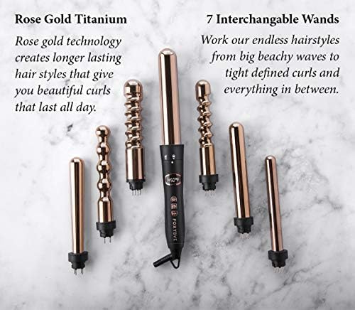 FoxyBae 7-in-1 Curling Iron Set, Le’Se7en Professional Black and Rose Gold Hair Curling Wand – 7 Interchangeable Barrel Ceramic Curlers – Titanium Wands & LCD Display for Temperature Control