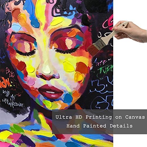 Impress your family and visitors throughout the year with this beautiful African American Black Art Pop Culture Women Painting on Canvas Wall Art. This wall art is to complement contemporary and modern pop home wall decor. Inspired by black women and street graffiti, our young artist Ye combines high tech ultra HD printing techniques with acrylic painting skills to express his passion and love in this set of artwork. This wall art piece is more than general canvas printing poster, it is a unique piece of original master work with stunning hand painted details. Her care and passion can be seen in every detail of these paintings. This wall art is beautifully built to brighten your space and to be admired for years to come!