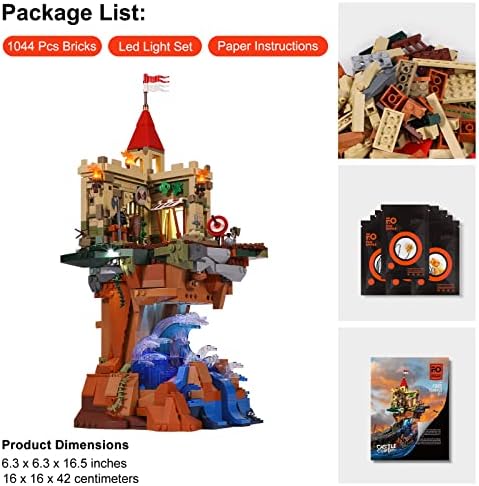 FUNWHOLE Lighting Building Bricks Set – Castle on The Cliff LED Light Construction Building Model Set 1044 Pcs for Adults and Teen