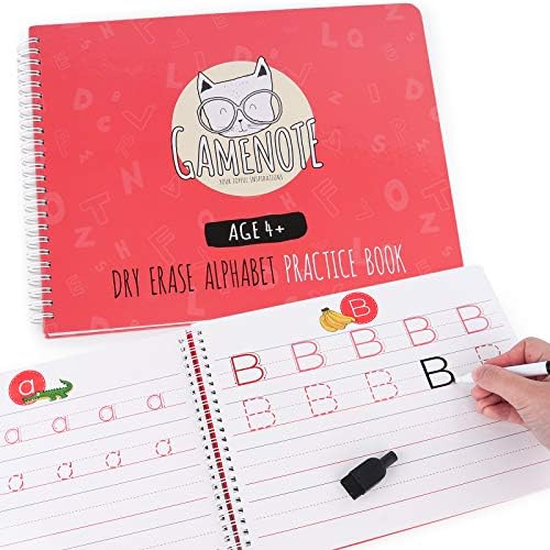 Gamenote Dry Erase Letters Practice Book with Marker – Wipe Clean Alphabet Handwriting Workbook Kindergarten Writing Paper with Lines for Preschool Kids