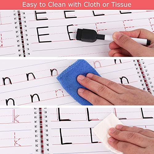 Kindergarten School Supplies: Book measures 11.4 × 8.58 ×1 inch, made of thick cardboard. Waterproof and tear resistance for long time use. Quality PET surface easy to wipe with cloth or tissue. No more waste of paper to practice letter