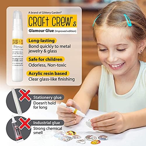 🧴 SPECIAL PURPOSE CRAFT GLUE – acrylic resin based, with clear glass-like finishing that last. It is safe, odorless, and bond quickly to metal jewelry and glass.