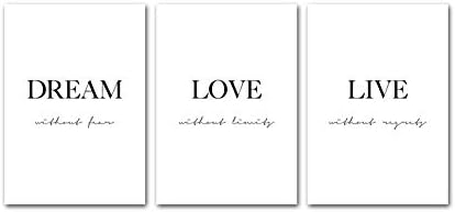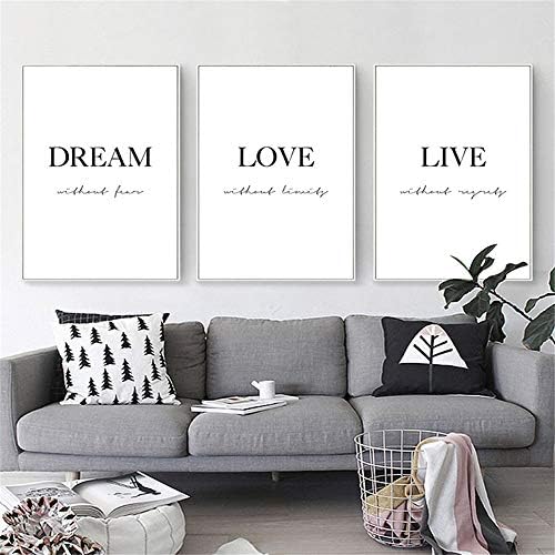 GSMWY Dream Love Motivational Poster Black White Simple Quotes Canvas Wall Art Print Painting Minimalist Room Decoration Picture 3 Pieces 40x60cm no Frame