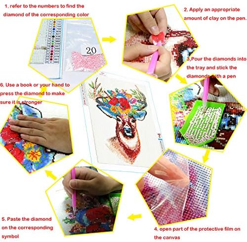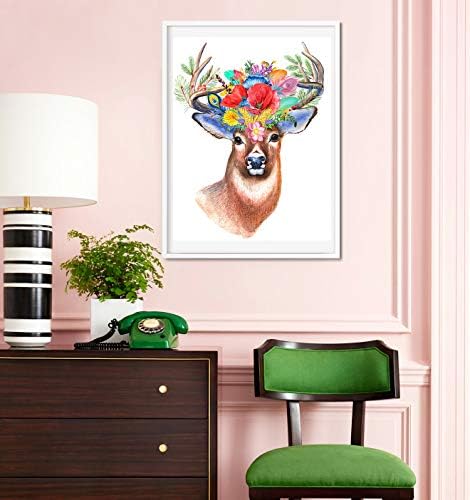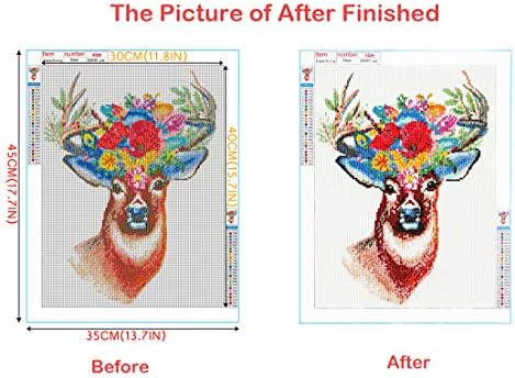Guvana 5D Diamond Painting Number Kits for Adults Kids Paint by Numbers Diamonds DIY Flower Deer Full Drill Diamond Art Painting for Home Wall Decor by Diamond Painting Dots Pictures 11.8″×15.7″