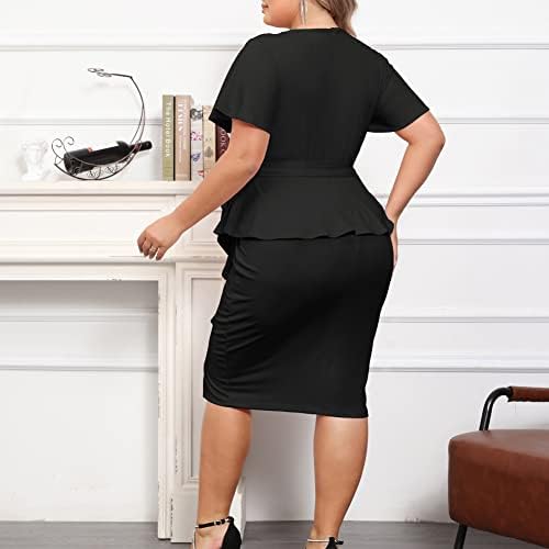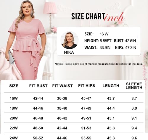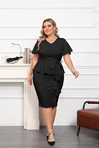 Hanna Nikole Women Plus Size Pencil Dress V Neck Ruffle Sleeves Vintage Wedding Guest Dress Wear to Work Dresses