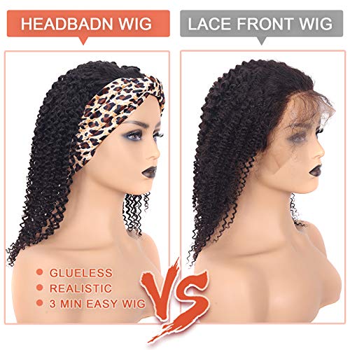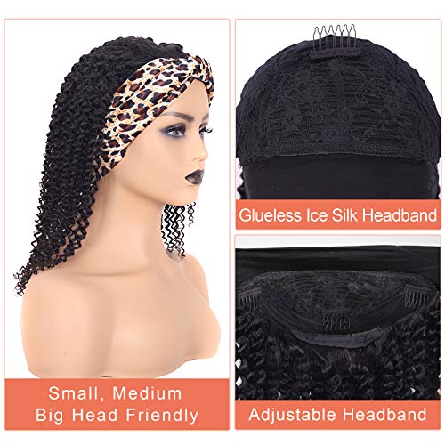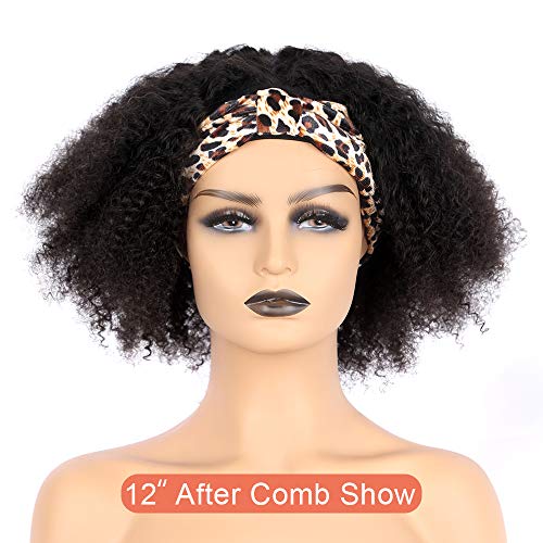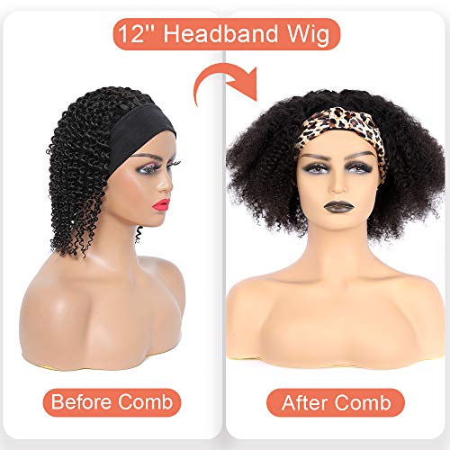 Headband Wigs for Black Women Human Hair Afro Curly Half Wigs for Black Women 12 Inch Glueless Non Lacefront Wigs With Real Hair for Women Natural Color