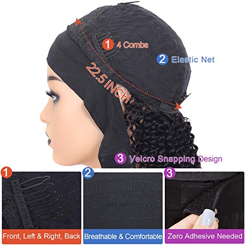 CAP SIZE: Average Size(22”-22.5”) with Velcro in the back and 4 combs sewn inside, small, medium, and large head sizes friendly, no worry wig cap size anymore!