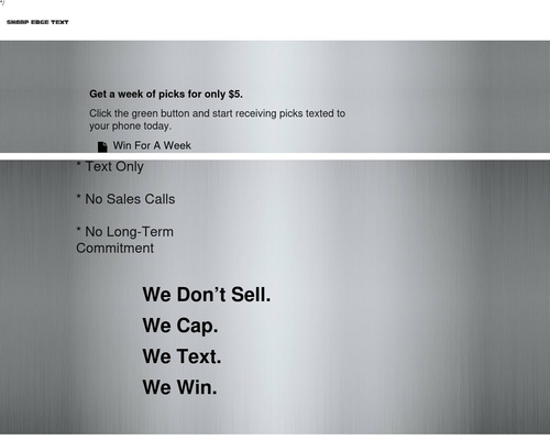 Sharp Edge Text is not a gambling website. We do not accept wagers of any kind. All information is provided only for entertainment purposes. Using this information for purposes that violate federal, state, provincial, or local laws is strictly prohibited. By making payment you waive any civil or criminal litigation against Sharp Edge Text and its associated parties.