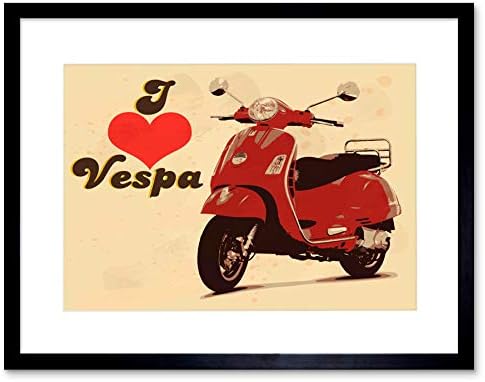 Illustration Transport Scooter Moped Love RED Black Framed Art Print B12X14032